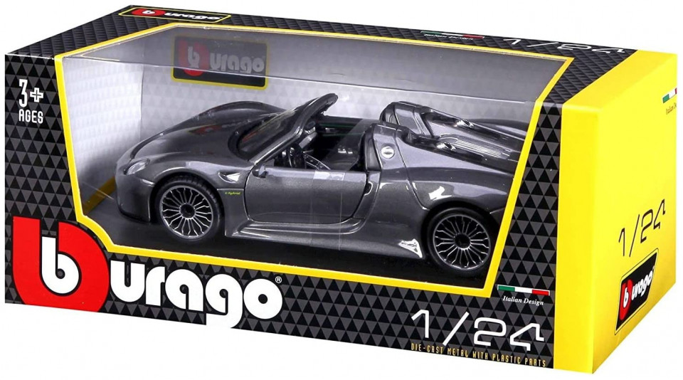 Bburago 18/21076 Μεταλλικό κλίμακα 1:24 Official Porsche 918 Spyder γκρι