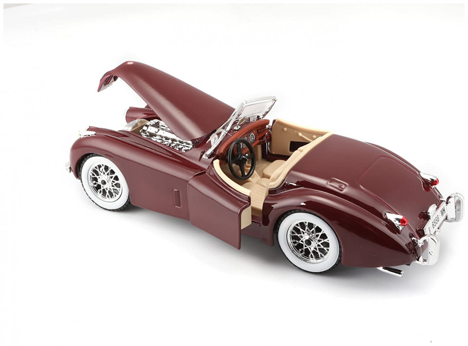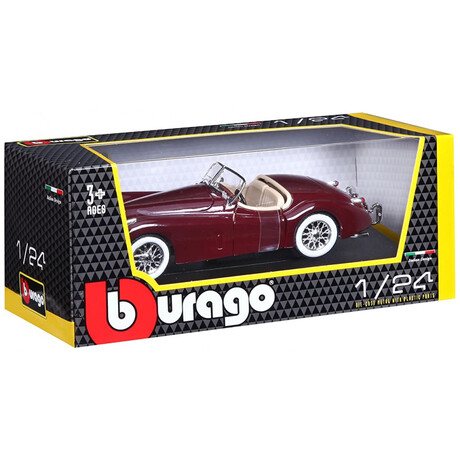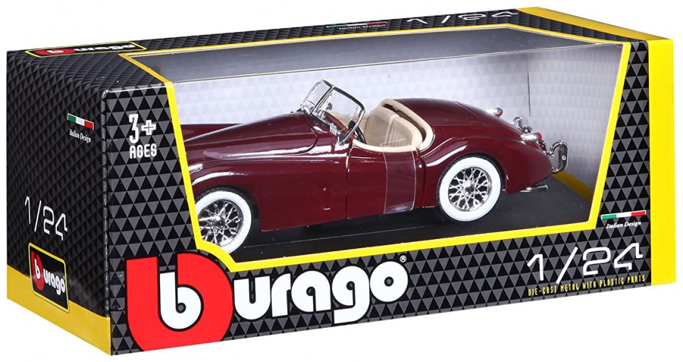 The latest JAGUAR XK 120 ROADSTER (1951) Model, recreated in 1:24 scale by Bburago. From the Manufacturer The finest die-cast vehicles with exacting details: opening doors, hoods and trunks with deep luster, non-toxic paint, folding bucket seats, detailed dashboard and precision engine. All cars have been manufactured to look and function just like their life-size counterparts. Burago cars of all sizes can be used for play as well as becoming important collectibles. Bburago's mission is to be the leader in the targeted markets worldwide, and continuously innovation to develop consumer-preferred products. With over 30 years experience in manufacturing high quality die-cast products, and over 10,000 employers worldwide, and fully vertical-integrated facilities allowing us to provide the best quality and value products with passion to fulfill the consumer need Product Description This Car Has The Following Features: Open, Door,Trunk, Wokring Front Wheels.Workable Steering Wheel.