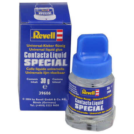 Revell Contacta Liquid Special is a special chrome adhesive, but it can be used very universally. As the chrome layer prevents the welding effect, you either scrape off the chrome layer or - much more elegantly - use the special adhesive from Revell. Also transparent parts such as windows or cockpit hoods can be mounted well with it, because these transparent parts are not attacked by it. Revell Contacta Special also bonds metal, wood, paper, cardboard, glass and textiles both to plastic and to each other.