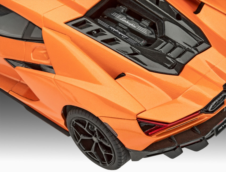 Το Revell Lamborghini Revuelto (07723) είναι ένα λεπτομερές μοντέλο αυτοκινήτου σε κλίμακα 1:24, που αναπαριστά με ακρίβεια τη σύγχρονη υπερτροφοδοτούμενη Lamborghini Revuelto. Το σετ περιλαμβάνει κομμάτια υψηλής ποιότητας για τη συναρμολόγηση του μοντέλου, με λεπτομέρειες όπως το αμάξωμα, οι τροχοί, η ανάρτηση και το εσωτερικό, προσφέροντας ένα ρεαλιστικό και εντυπωσιακό αποτέλεσμα.