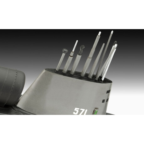 Το Revell U.S.S. Nautilus είναι ένα λεπτομερές μοντέλο υποβρυχίου σε κλίμακα 1:305, που αναπαριστά το ιστορικό αμερικανικό πυρηνοκίνητο υποβρύχιο U.S.S. Nautilus (SSN-571), το πρώτο στον κόσμο πυρηνοκίνητο υποβρύχιο. Το σετ περιλαμβάνει κομμάτια υψηλής ακρίβειας για τη συναρμολόγηση του μοντέλου, με λεπτομέρειες όπως το κύτος, η υπερκατασκευή και οι πηδάλιοι, προσφέροντας ένα ρεαλιστικό και ολοκληρωμένο αποτέλεσμα.