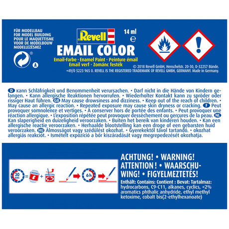 • It's possible to apply another colour or coat after only 6 hours. Revell Enamel paint is completely dry after 24 hours.