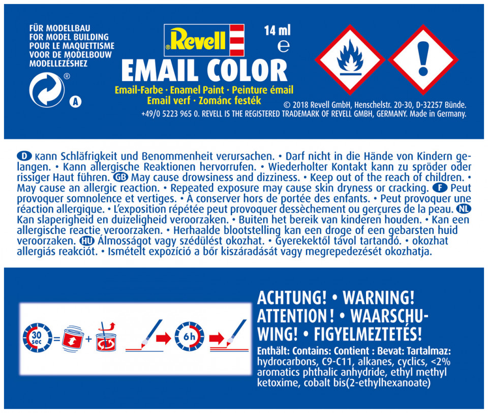 • It's possible to apply another colour or coat after only 6 hours. Revell Enamel paint is completely dry after 24 hours.