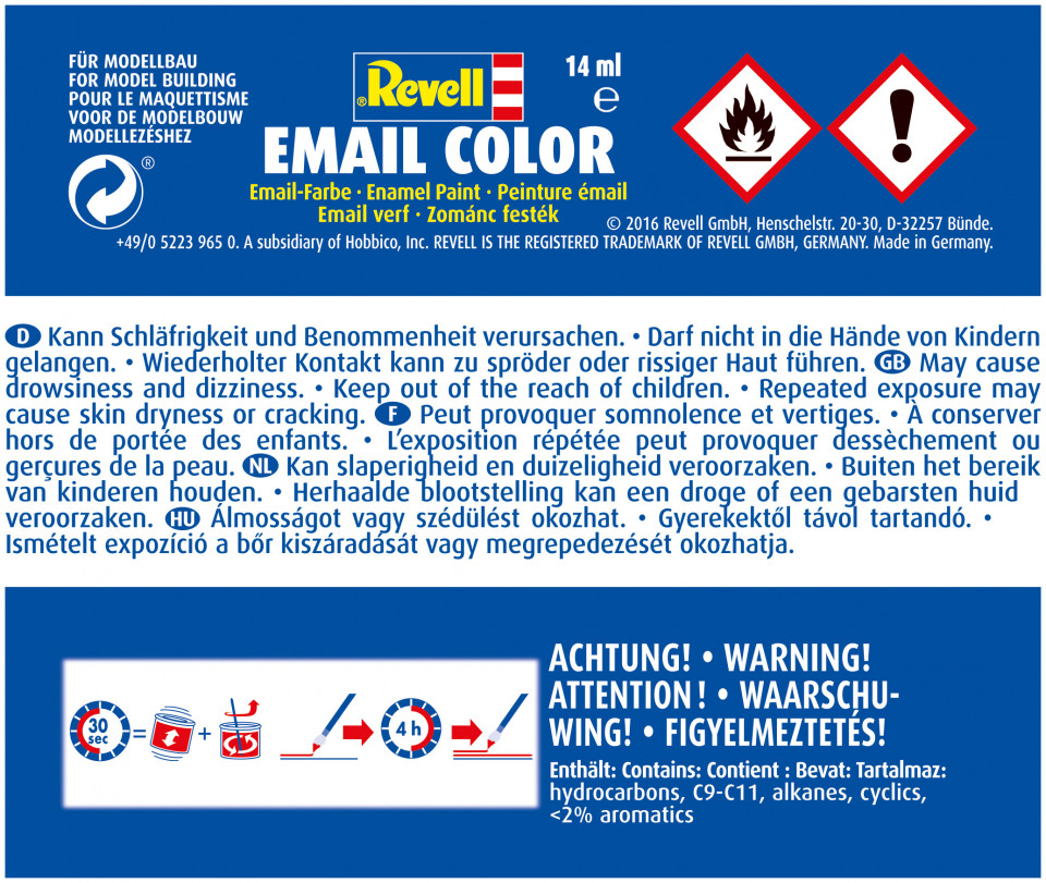 • It's possible to apply another colour or coat after only 6 hours. Revell Enamel paint is completely dry after 24 hours.