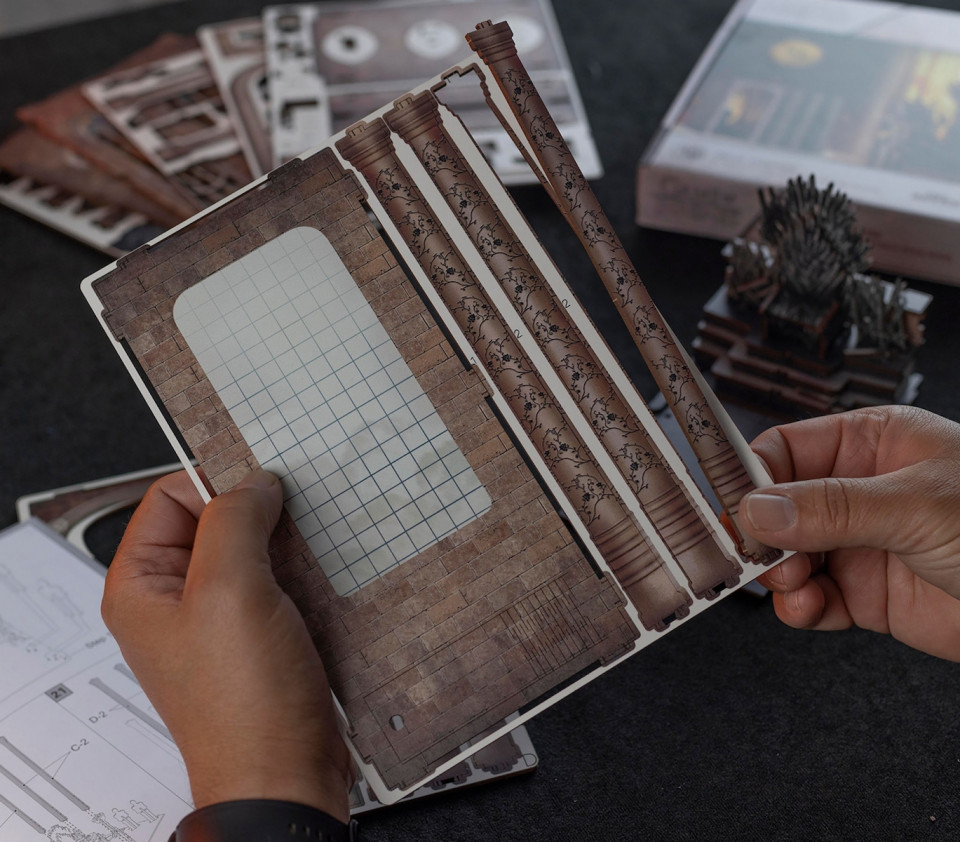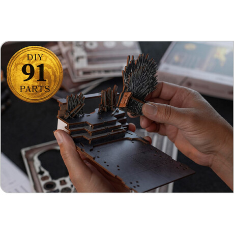Το Revell 3D Puzzle: Iron Throne – Game of Thrones: Tiny Adventures LED είναι ένα συναρμολογούμενο 3D παζλ που αναπαριστά τον θρυλικό Σιδερένιο Θρόνο από τη σειρά Game of Thrones. Το σετ περιλαμβάνει κομμάτια υψηλής ακρίβειας για τη δημιουργία ενός λεπτομερούς και ρεαλιστικού μοντέλου σε τρισδιάστατη μορφή, καθώς και LED φωτισμό για εντυπωσιακή παρουσίαση.