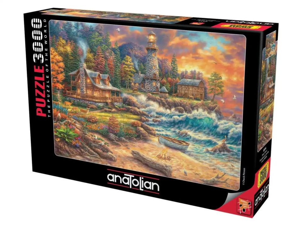Το παζλ Anatolian 4934 – Pinson: Providence By The Sea των 3000 τεμαχίων απεικονίζει μια γαλήνια θαλασσινή σκηνή με όμορφα κτίρια στην ακτή, σε μια σύνθεση γεμάτη χρώμα και λεπτομέρεια.