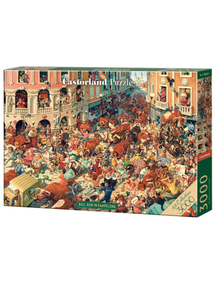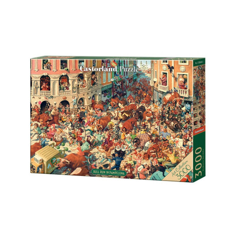Το Castorland 300648 Puzzle 2000 τεμ. – Bull Run in Pampeluna είναι ένα καλλιτεχνικό παζλ υψηλής ποιότητας, που απεικονίζει με δυναμισμό και λεπτομέρεια τη σκηνή του Bull Run στο Πανπλόνα της Ισπανίας, αποτυπώνοντας την ένταση, τα χρώματα και την ατμόσφαιρα της παραδοσιακής γιορτής.