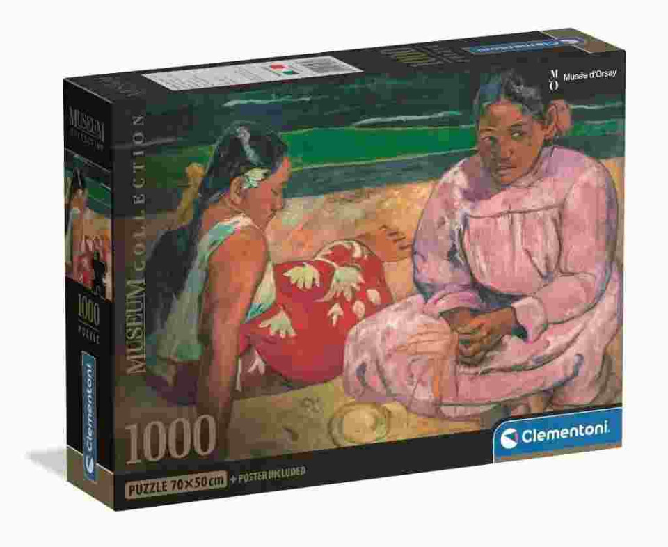 Το Clementoni 39975 Puzzle 1000 τεμ. – Museum Collection: Gauguin, Femmes de Tahiti αποτελεί ένα καλλιτεχνικό παζλ υψηλής αισθητικής που αναπαριστά το διάσημο έργο του Paul Gauguin «Femmes de Tahiti», αποδίδοντας με ρεαλισμό τα ζεστά χρώματα και την εξωτική ατμόσφαιρα της Ταϊτής.