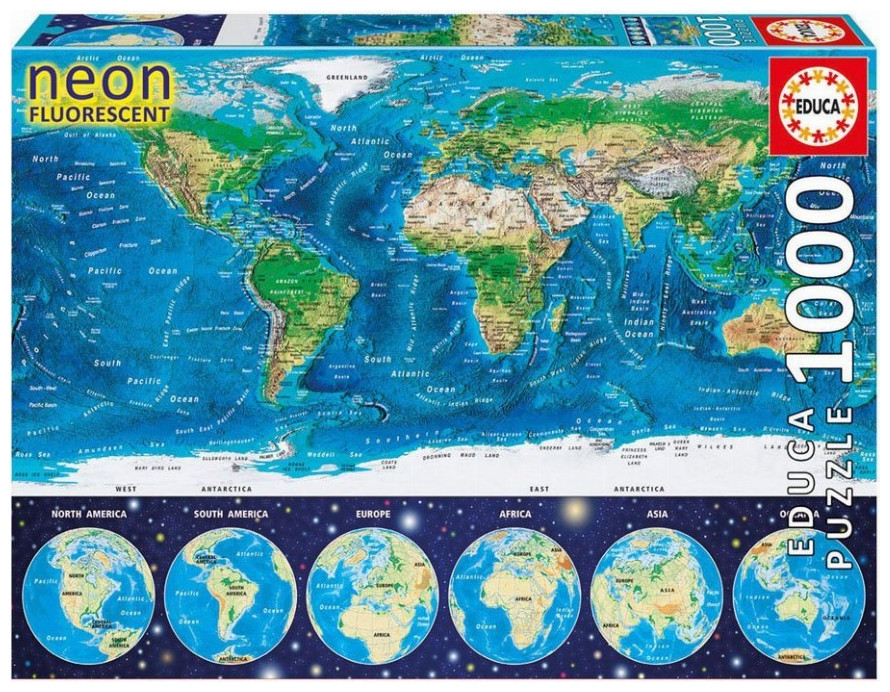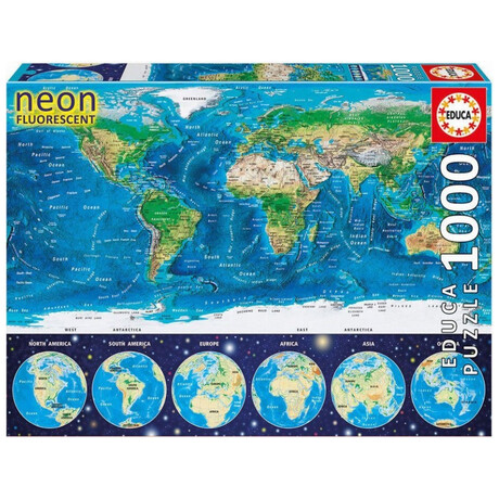 Educa 16760 Παζλ 1000Τεμ. World Map Neon