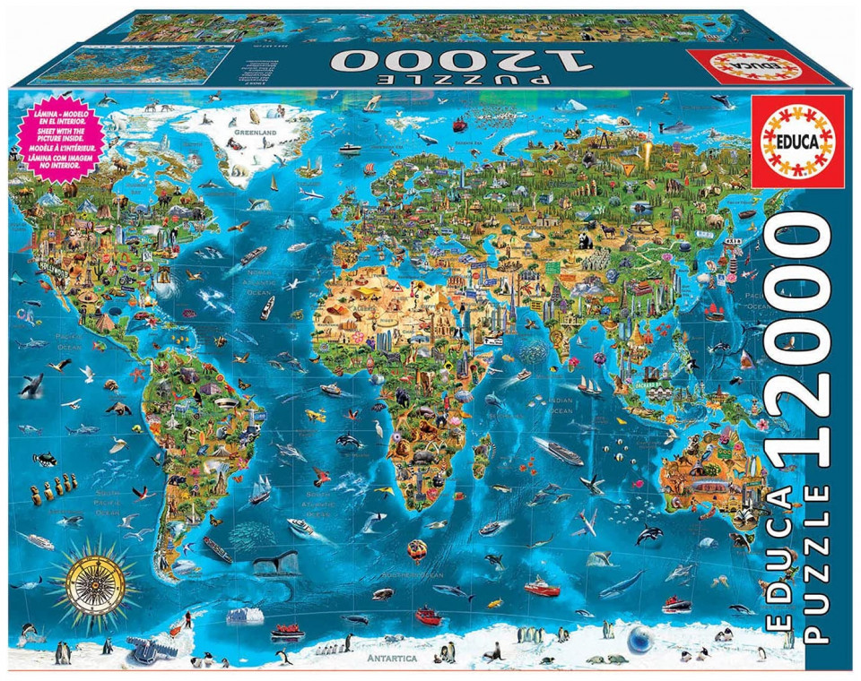 Incredible puzzle of 12,000 piezas con las muchas maravillas del mundo. Imagen llena of detalls. Un verdadero puzzle para los maestros puzzleros