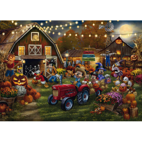 Το Schmidt 58048 Puzzle – Disney Mickey & Minnie Pumpkin Festival είναι ένα παζλ 1000 κομματιών που αποτυπώνει την ατμόσφαιρα του φθινοπώρου και του Halloween με τους αγαπημένους ήρωες της Disney, Mickey και Minnie Mouse. Η εικόνα παρουσιάζει μια γιορτινή σκηνή σε μια φάρμα, με διακοσμημένα κολοκύθια, φωτεινά φανάρια και τους χαρακτήρες της Disney να συμμετέχουν σε διάφορες δραστηριότητες, δημιουργώντας μια ατμόσφαιρα χαράς και γιορτής.
