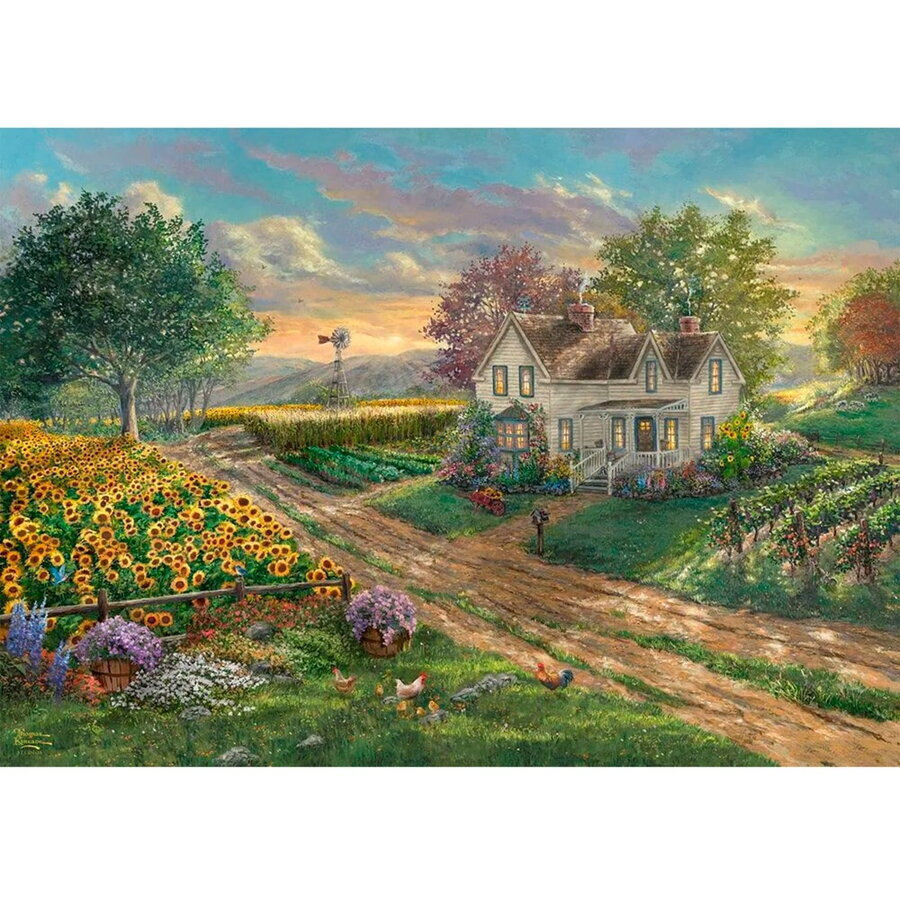 Το παζλ Schmidt 58779 Sunflower Field 1000 τεμαχίων παρουσιάζει ένα ηλιόλουστο χωράφι με ηλιοτρόπια, αποτυπωμένο με ζωντανά χρώματα και φωτεινή ατμόσφαιρα μέσα από τη χαρακτηριστική καλλιτεχνική προσέγγιση του Thomas Kinkade. Η σύνθεση αναδεικνύει τη φυσική ομορφιά, την πληθώρα των λουλουδιών και την αίσθηση ζεστασιάς, προσφέροντας μια ευχάριστη και δημιουργική εμπειρία συναρμολόγησης.