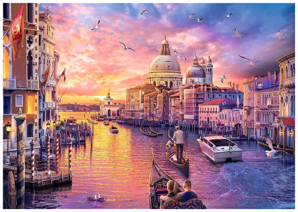 Το Trefl 10926 Puzzle 1000 τεμ. – The Charms of Venice είναι ένα καλλιτεχνικό παζλ υψηλής ποιότητας που απεικονίζει μια ρομαντική και γραφική θέα της Βενετίας, με το Μεγάλο Κανάλι και την παραδοσιακή αρχιτεκτονική της πόλης στο επίκεντρο, προσφέροντας μια όμορφη και καθηλωτική εικόνα για συναρμολόγηση.