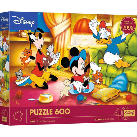 Το Trefl 37601 Puzzle 600 τεμ. – Disney Mickey Mouse and Friends (40th Anniversary) είναι ένα καλλιτεχνικό και συλλεκτικό παζλ υψηλής ποιότητας με θέμα τον κλασικό χαρακτήρα Mickey Mouse και τους αγαπημένους του φίλους, σχεδιασμένο ειδικά για να τιμήσει τα 40 χρόνια της αγαπημένης αυτής παρέας.