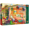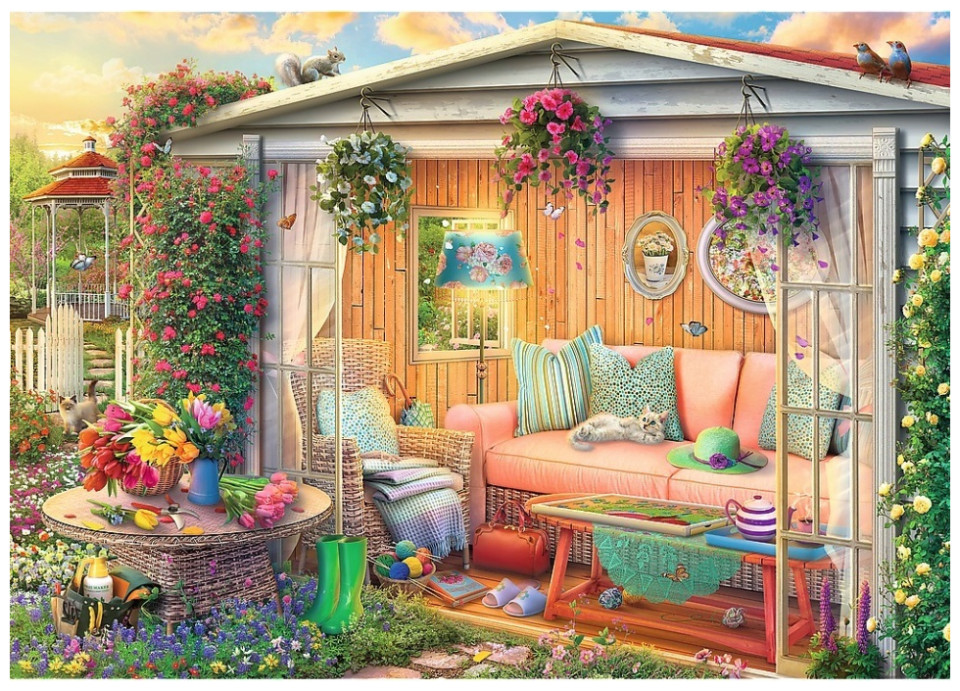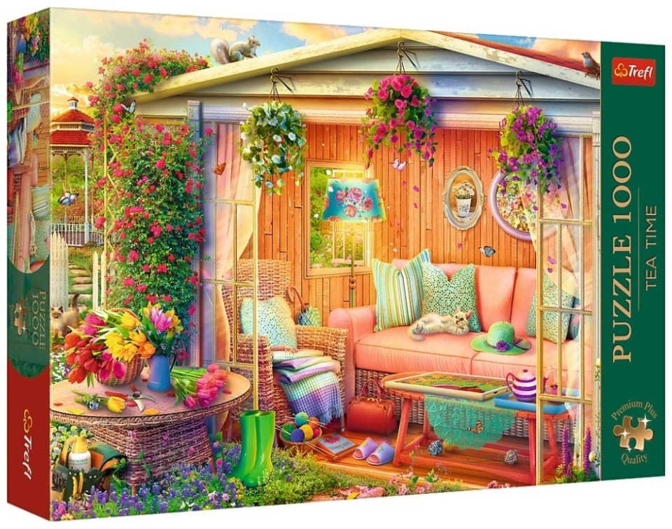 Παζλ 1.000 τεμαχίων από τη σειρά Premium Plus της Trefl, με σκηνή κήπου και ξύλινης αυλής γεμάτης λουλούδια και χρώματα. Ιδανικό για ηλικίες 12+.