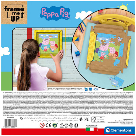 60 piece jigsaw puzzle + frame measuring 27 x 27 cm designed especially for children, representing their most loved characters. A new range of jigsaw puzzles for children featuring an innovative design. Made with a special easy-to-assemble cardboard frame, they can be framed and hung up without any need for glue. Frame Me Up can be framed and collected to make the perfect decoration for the children's bedroom. Suitable for ages 6 years and up.