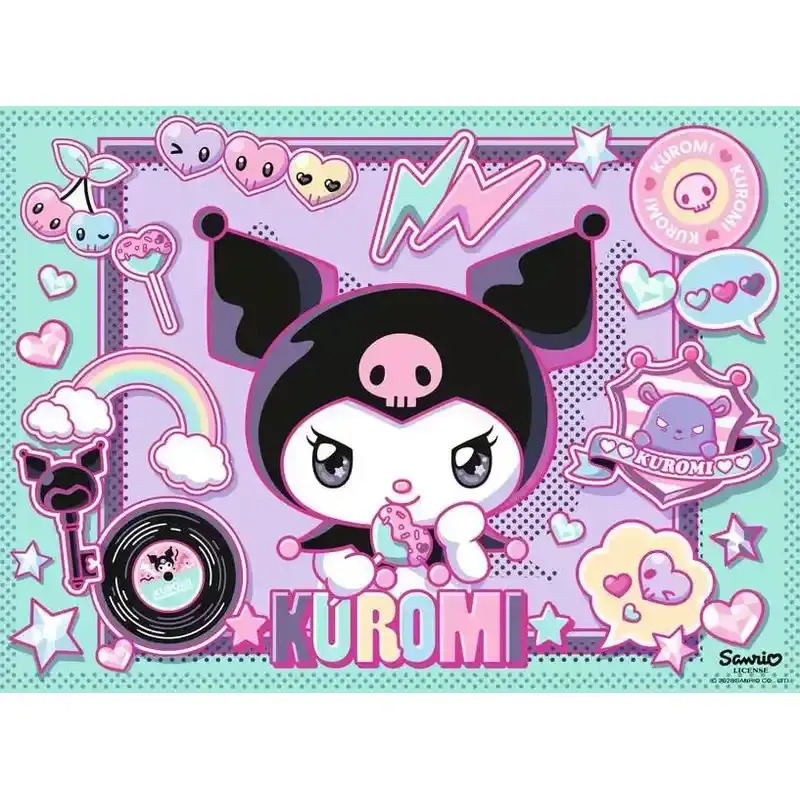 Το σετ Ravensburger 04333 100 pcs XXL Kuromi περιλαμβάνει ένα παζλ των 100 κομματιών με χαρούμενο, πολύχρωμο σχέδιο βασισμένο στον χαρακτήρα Kuromi. Η εικόνα απεικονίζει τη Kuromi σε παιχνιδιάρικη και φιλική διάθεση, ενθαρρύνοντας τη δημιουργικότητα, την παρατηρητικότητα και τις λεπτές κινητικές δεξιότητες μέσα από το παιχνίδι.