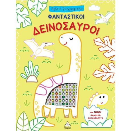 Σε αυτό το υπέροχο βιβλίο, τα μικρά παιδιά θα χρωματίσουν τις ιστορίες με τους φανταστικούς δεινόσαυρους και θα τις διακοσμήσουν χρησιμοποιώντας τα 1000 λαμπερά αυτοκόλλητα.