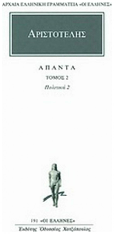 Βιβλία Γ΄-Ε΄. Έννοια της πόλης και του πολίτη. Είδη πολιτευμάτων. Δημοκρατία, ολιγαρχία, βασιλεία. Είδη μοναρχίας. Πολιτεύματα που επικρατούν και παρεκβατικές μορφές τους. Σχετικά με το άριστο πολίτευμα. Παθολογία των πολιτευμάτων. Αιτίες και μορφές εκδήλωσης των στάσεων στα διάφορα πολιτεύματα.
