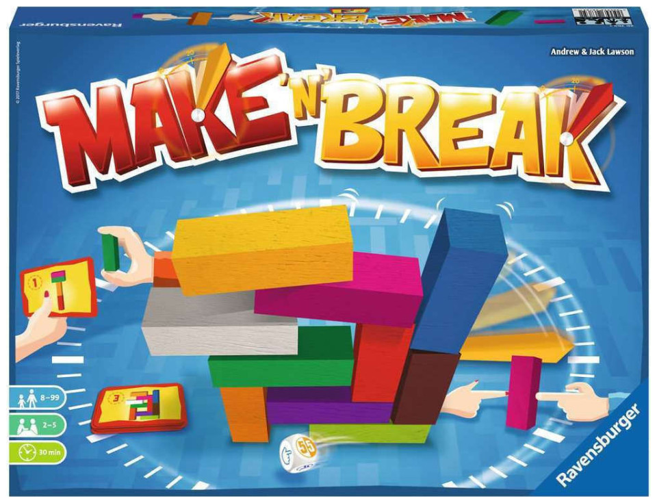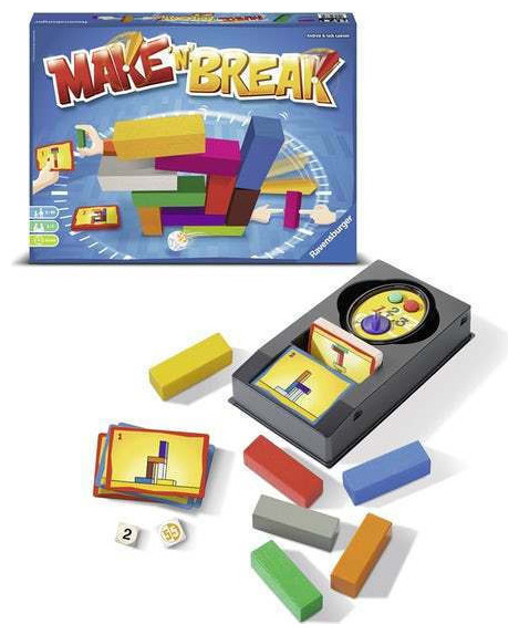 Στόχος παιχνιδιού: Στο Make 'n' Break, χρησιμοποιείτε τα τουβλάκια για να χτίσετε τις κατασκευές που εικονίζονται στις κάρτες κατασκευών. Όποιος καταφέρνει το συντομότερο να χτίζει σωστά υπό την πίεση χρόνου, συγκεντρώνει τους περισσότερους πόντους και κερδίζει το παιχνίδι!