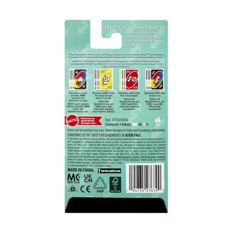 Εμπλούτισε το παιχνίδι σου UNO με το σετ Add-On Pack Κάρτες Αλλαγής Φοράς, προσθέτοντας νέες στρατηγικές και ανατροπές για ακόμη πιο διασκεδαστικούς γύρους.