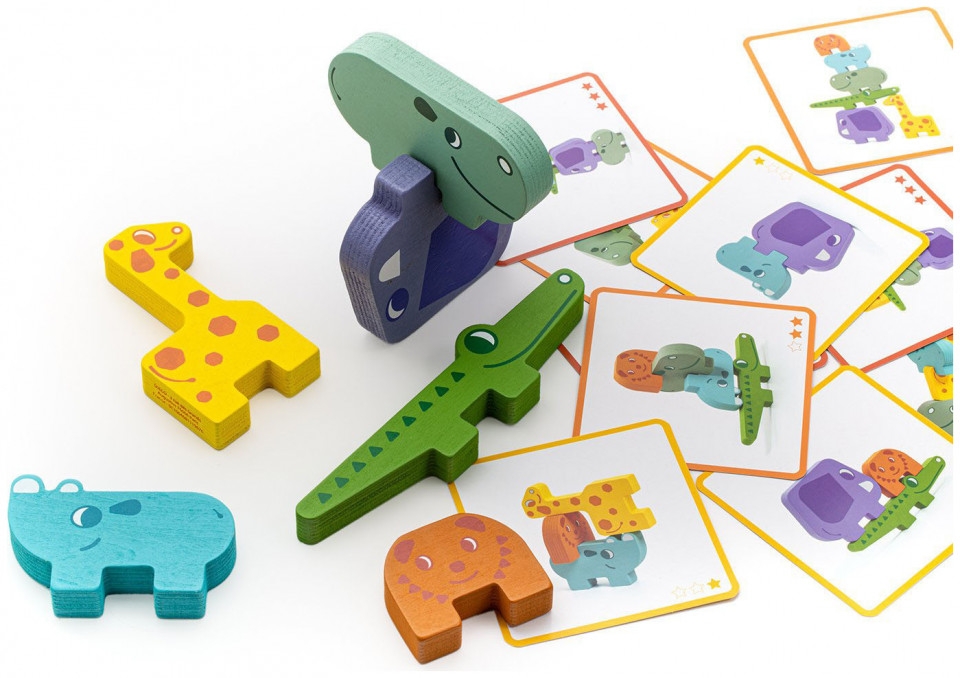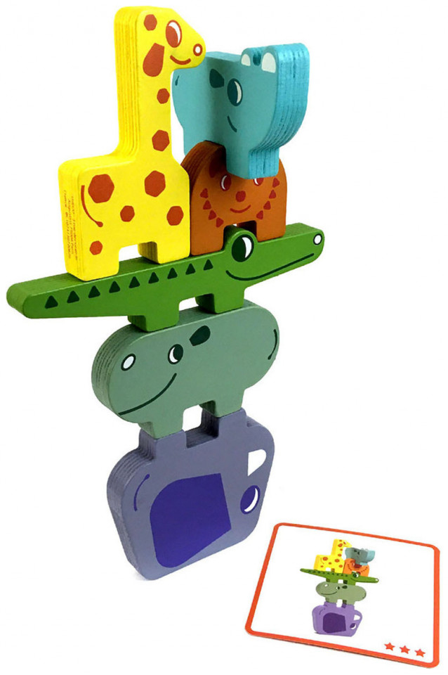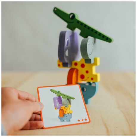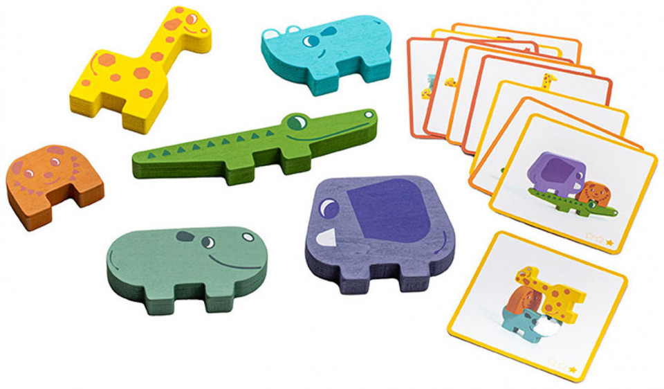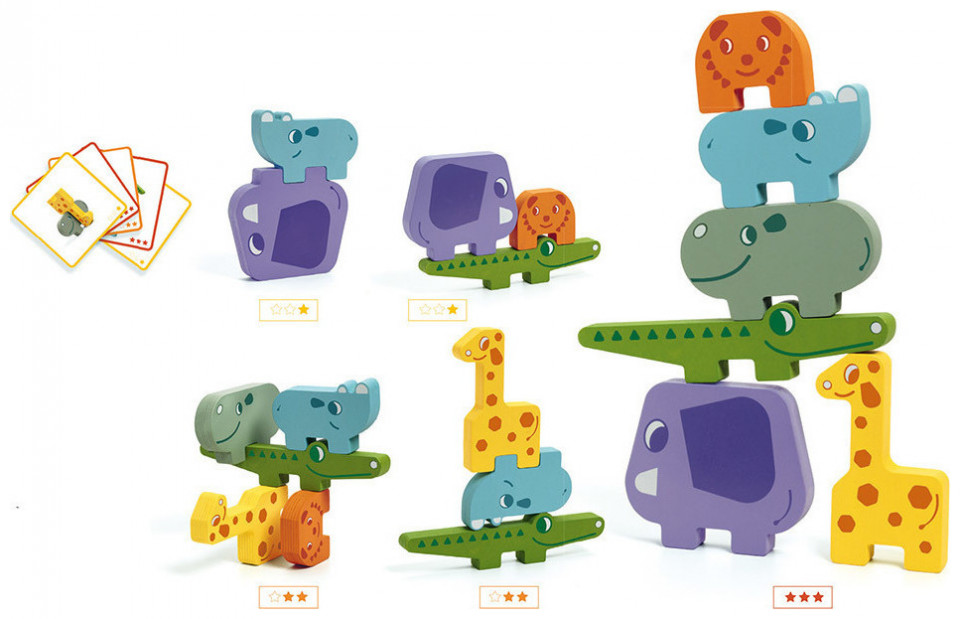 Μπορείς να τοποθετήσεις τα ξύλινα ζώα, όπως δείχνει η κάρτα, χωρίς να χάσουν την ισορροπία τους; Το σετ περιλαμβάνει 6 ξύλινα ζωάκια της ζούγκλας, με τα οποία το παιδί μπορεί να παίξει και ελεύθερα, και 20 διαφορετικές εικονογραφημένες κάρτες για αντιγραφή. Ιδανικό παιχνίδι από την εταιρεία Djeco για την ανάπτυξη της παρατηρητικότητας, της λεπτής κινητικής δεξιότητας, της αντίληψης του χώρου και της συγκέντρωσης.