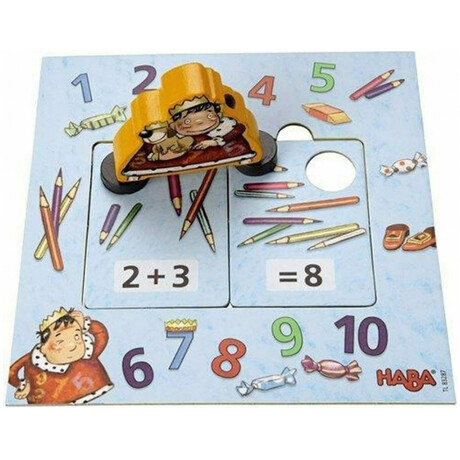 Εκπαιδευτικό επιτραπέζιο της γερμανικής εταιρίας Haba για εκμάθηση αριθμητικών πράξεων. Το παιχνίδι περιλαμβάνει επτά ιδέες παιχνιδιών, που έχουν διάφορους βαθμούς δυσκολίας. Χάρη στις τρύπες που έχουν οι κάρτες , η έξυπνη φιγούρα του βασιλιά θα σας βοηθήσει στην επαλήθευση της κάθε απάντησης.