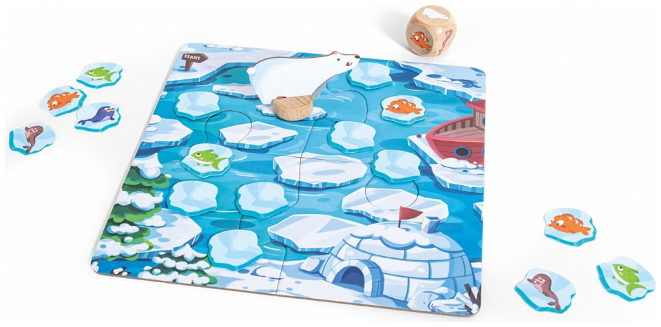 Βοηθήστε την πολική αρκούδα Φρόστι να φτάσει στο σπίτι της, ενώ συλλέγετε τροφή στη διαδρομή. Ρίξτε τα ζάρια και ανακαλύψτε το ζώο κάτω από τον παγόβουνό. Εάν είναι διαφορετικό, επιστρέψτε το, αλλά θυμηθείτε το. Αν το βρείτε, κάντε ένα βήμα μπροστά. Όταν ρίξετε ένα πολύχρωμο ψάρι, πάρτε έναν πάγο της επιλογής σας. Το παιχνίδι τελειώνει όταν η Φρόστι φτάσει στο σπίτι της ή τελειώσουν όλα τα πλακίδια πάγου. Κερδίζει αυτός που έχει τις περισσότερες ζεύξεις ζώων.
