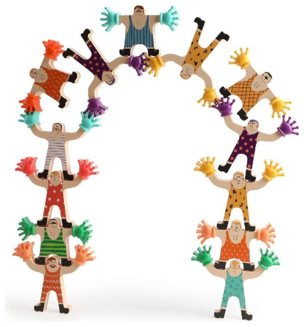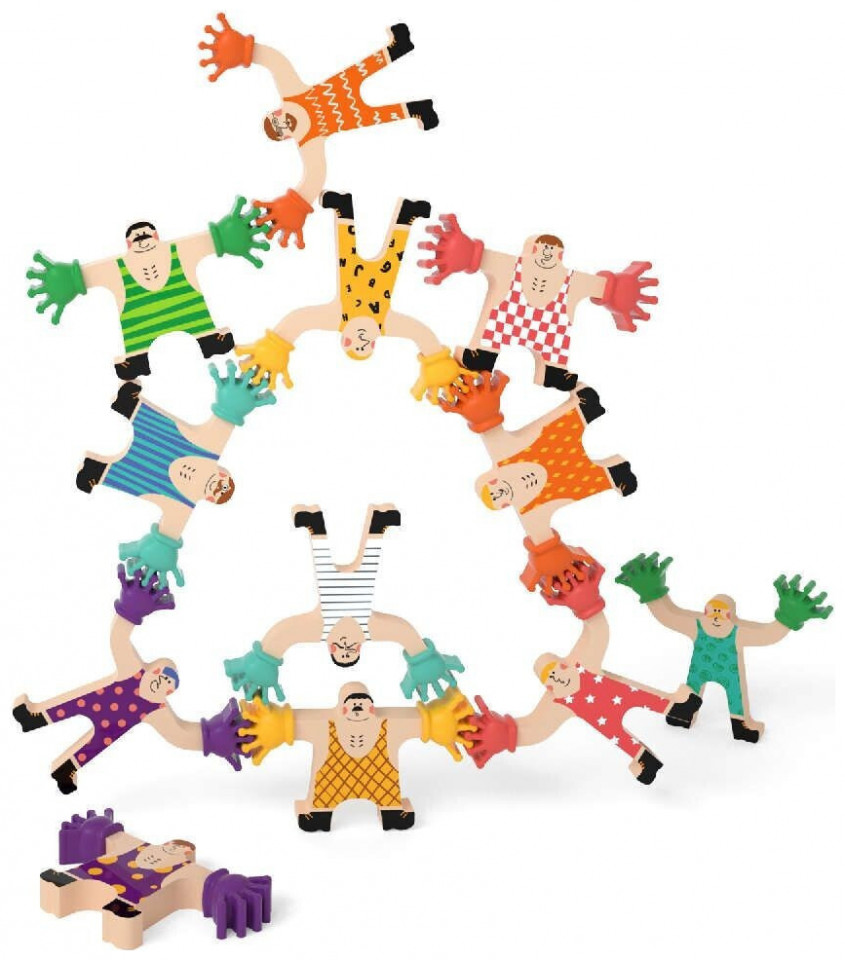 Αυτό το διασκεδαστικό εκπαιδευτικό παιχνίδι ισορροπίας απαιτεί δεξιότητες και σταθερά χέρια. Τα παιδιά πρέπει να σκεφτούν δημιουργικά και να εξασκηθούν στην προσέγγιση ενός προβλήματος με τρόπο προσανατολισμένο στη λύση, ώστε να φτιάξουν σωστά έναν πύργο ή να στοιβάξουν τις φιγούρες. Οι ξύλινες φιγούρες είναι εύκολα διαχειρήσιμες από τα μικρά παιδιά, ενώ οι υπέροχες εικονογραφήσεις διεγείρουν τη φαντασία τους.