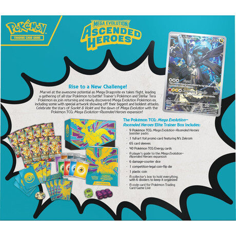 Το Pokémon TCG: Mega Evolution—Ascended Heroes Elite Trainer Box φέρνει τη δυναμική επιστροφή των Mega Evolution Pokémon ex, με πρωταγωνιστή τον Mega Dragonite ex που ηγείται μιας ομάδας πανίσχυρων Pokémon στη νέα εποχή Scarlet & Violet. Η συλλογή περιλαμβάνει αποκλειστική full-art promo κάρτα του N’s Zekrom, booster packs από το νέο expansion και όλα τα απαραίτητα αξεσουάρ για οργανωμένο και ανταγωνιστικό παιχνίδι.