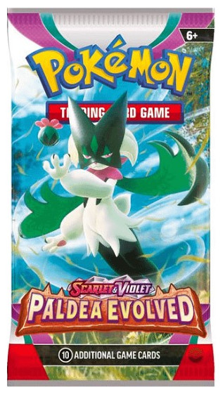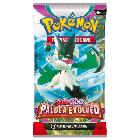 Energy surges as new powers awaken and perilous legends are revealed! First partners Meowscarada ex, Skeledirge ex, and Quaquaval ex have evolved to take the stage with mesmerizing magic, song, and dance. Meanwhile, Forretress, Slowking, and Dedenne shine as Tera Pokémon ex, and Chien-Pao ex, Ting-Lu ex, and others bring daunting strengths requiring courage to command. Even Pikachu joins the Pokémon ex party in the Pokémon TCG: Scarlet & Violet—Paldea Evolved expansion!