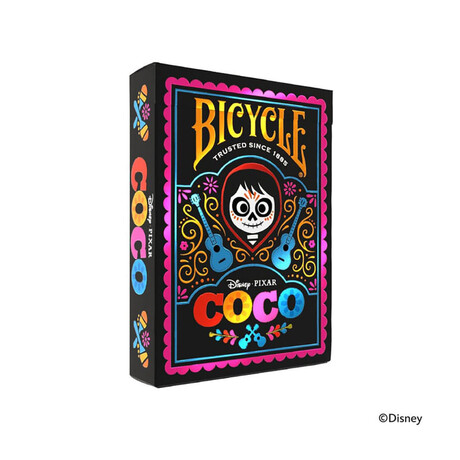 Η Bicycle Disney Coco είναι μια θεματική τράπουλα εμπνευσμένη από τον κόσμο της ταινίας Disney Pixar Coco, με εντυπωσιακό μαύρο και πολύχρωμο design, ειδικά εικονογραφημένες φιγούρες και premium κατασκευή από την Bicycle. Το holographic κουτί και τα custom σχέδια με τον Miguel, τον Héctor και άλλους χαρακτήρες την κάνουν ιδανική τόσο για παιχνίδι όσο και για συλλογή.