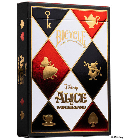 Η συλλεκτική τράπουλα Bicycle Disney Alice in Wonderland είναι εμπνευσμένη από τον μαγικό κόσμο της Αλίκης στη Χώρα των Θαυμάτων της Disney. Το εντυπωσιακό κουτί με κόκκινο, μαύρο και χρυσό σχεδιασμό θυμίζει τη βασιλική αυλή της Queen of Hearts και προσφέρει μια κομψή παρουσίαση για τους φίλους των καρτών και των συλλεκτικών αντικειμένων.