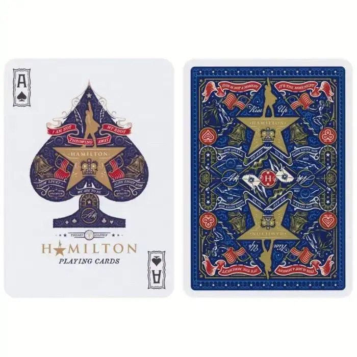 Theory11 – Hamilton Playing Cards είναι μια premium, συλλεκτική τράπουλα εμπνευσμένη από το μιούζικαλ Hamilton, που συνδυάζει κορυφαία ποιότητα κατασκευής με εντυπωσιακή αισθητική.