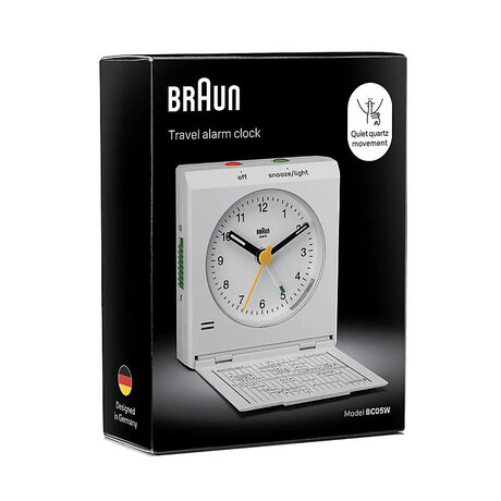 Το Braun BC05W Tourist είναι ένα κομψό και φορητό αναλογικό ξυπνητήρι με μίνιμαλ λευκό σχεδιασμό, ιδανικό για ταξίδια ή καθημερινή χρήση στο κομοδίνο. Συνδυάζει πρακτικότητα, ακρίβεια και αξιοπιστία σε μικρό μέγεθος.