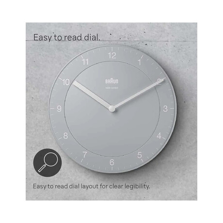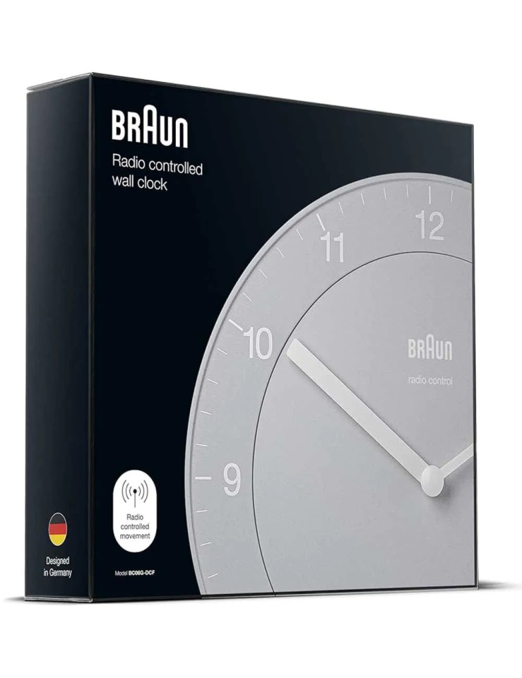 Το Braun BC06G-DCF είναι ένα κομψό και μινιμαλιστικό επιτοίχιο ρολόι, σχεδιασμένο με βάση τη διαχρονική αισθητική της Braun. Διαθέτει αυτόματη ρύθμιση ώρας μέσω του DCF ραδιοσήματος (Κεντρική Ευρώπη), εξασφαλίζοντας πάντα απόλυτη ακρίβεια χωρίς καμία χειροκίνητη παρέμβαση. Με καθαρές γραμμές, ευδιάκριτους αριθμούς και ματ γκρι φινίρισμα, ταιριάζει ιδανικά σε χώρους όπως γραφεία, σαλόνια ή αίθουσες συνεδριάσεων. Η διάμετρος των 200 mm προσφέρει ευανάγνωστη οθόνη ενώ ο αθόρυβος μηχανισμός του διασφαλίζει ησυχία σε κάθε περιβάλλον.
