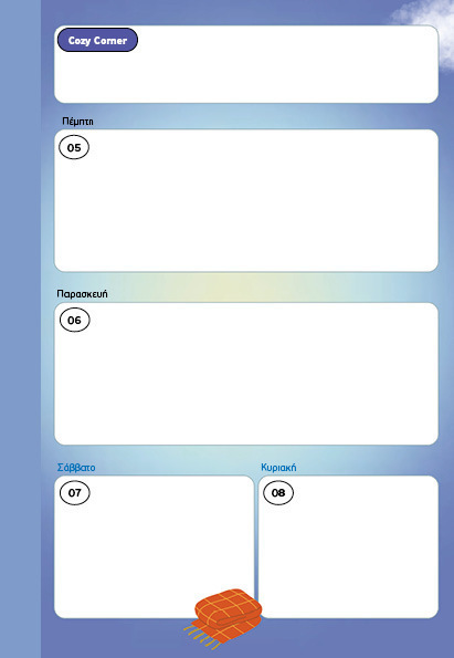 Στις σελίδες του θα βρεις µια µοναδική δραστηριότητα για κάθε µήνα, ώστε να κάνεις την καθηµερινότητά σου πιο ενδιαφέρουσα, αυτοκόλλητα και πολλές εκπλήξεις.