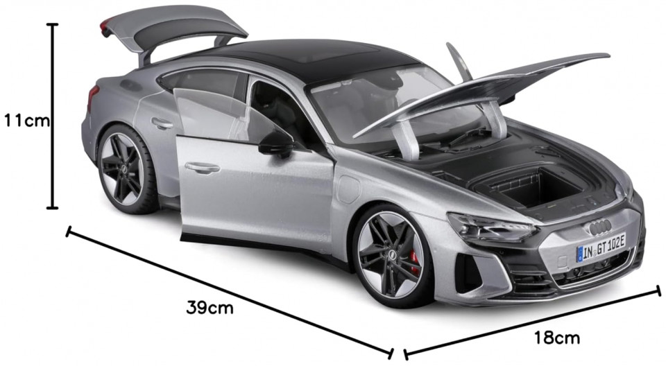 Welcome to the future of motoring. The 2022 Audi RS e-tron GT in silver is more than a scale model; it's a ticket to a world where technology meets the passion for speed. Imagine gliding silently through futuristic streets, every detail of your vehicle screaming elegance and power. This scale replica is a point of pride for any collector and a fantastic starting point for younger car enthusiasts. Feel connected with the next generation of electric vehicles, today.