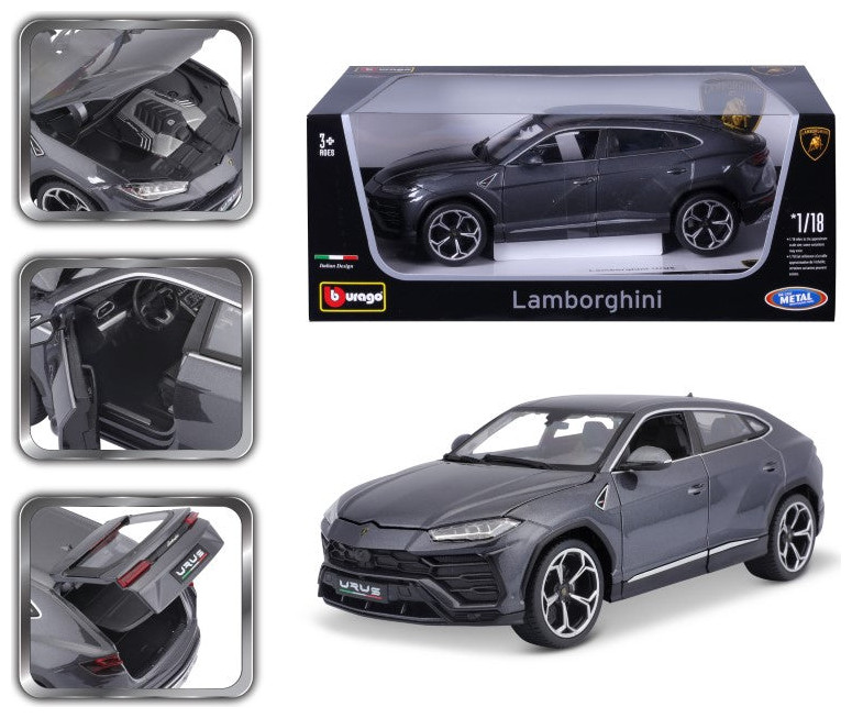 Explore the luxurious and powerful side of motoring with the Bburago - Lamborghini Urus - 1:18 Dark Grey.