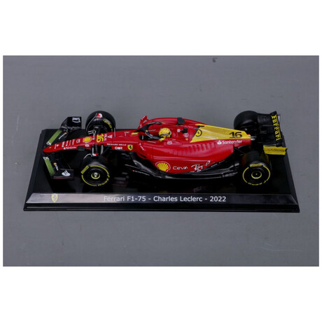 The Bburago model of the Ferrari F1-75 with the number #16 of Charles Leclerc is a meticulous replica, made in 1:24 scale. This model faithfully captures every detail of the original vehicle used in the 2022 Formula 1 season. It is the perfect piece to relive Leclerc's exciting races and to add a touch of speed and passion to your collection.
