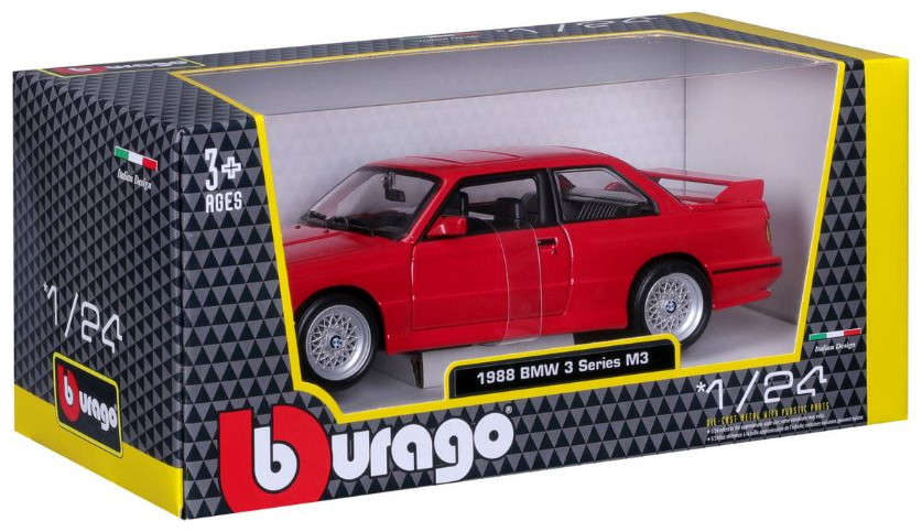 Bburago Diecast 1:24 Hobby Car BMW 3 Series M3 1988 Red Ages 3+ 18-21100