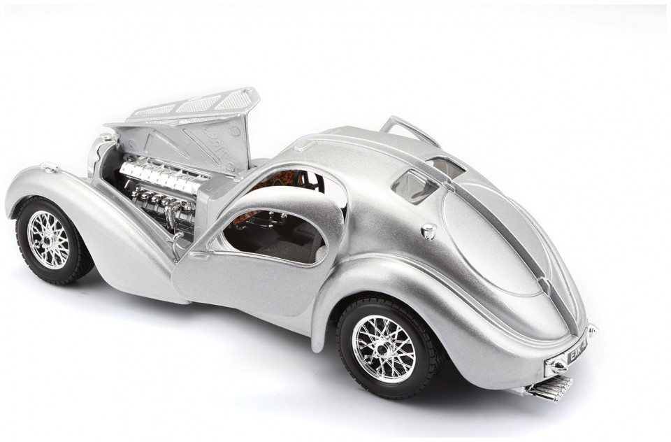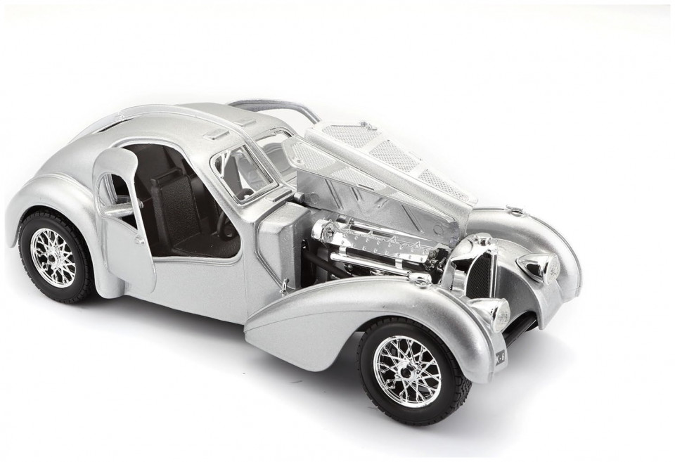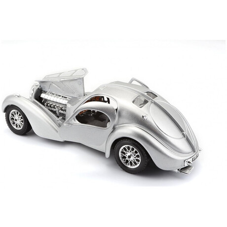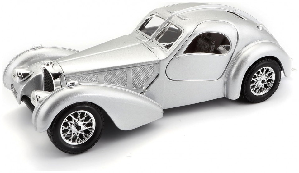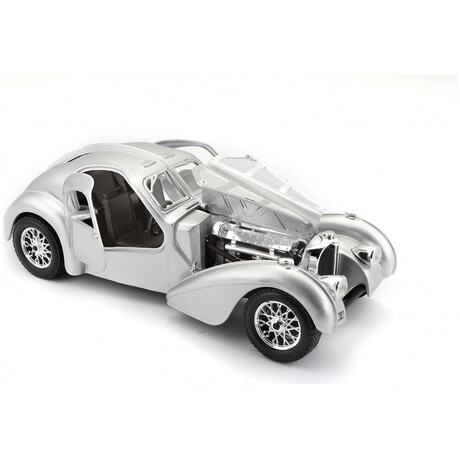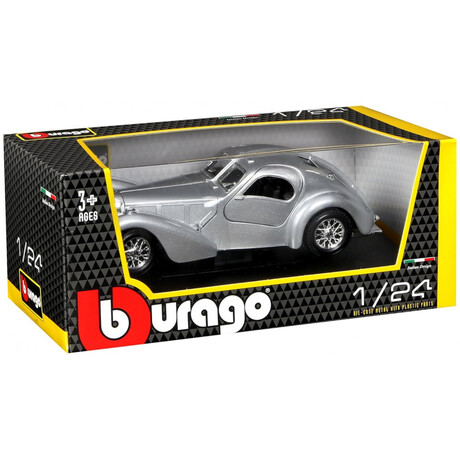 Capture the essence of the golden age of motoring with the Bugatti Atlantic Silver 1:24 scale Bburago model.