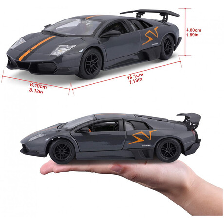 Η Lamborghini Murciélago LP 670-4 SV είναι ένα από τα πιο θρυλικά supercars και αυτή η κινεζική περιορισμένη έκδοση μεταφέρει την πολυτέλεια και το θράσος σε ένα νέο επίπεδο. Αυτό το αντίγραφο του Bburago σε κλίμακα 1:24 αντιπροσωπεύει την πεμπτουσία του ιταλικού σχεδιασμού και της μηχανικής ισχύος, δίνοντάς σας την αίσθηση ότι έχετε ένα κομμάτι της ιστορίας του αυτοκινήτου. Το μοντέλο διαθέτει προσεγμένες λεπτομέρειες που αποτίουν φόρο τιμής στο πρωτότυπο, από κάθε αεροδυναμική γραμμή μέχρι τις χαρακτηριστικές πόρτες "gullwing". Είναι κάτι περισσότερο από ένα μοντέλο. είναι μια εμπειρία που προκαλεί την καθαρή αδρεναλίνη της οδήγησης υψηλής ταχύτητας και την αχαλίνωτη πολυτέλεια που μόνο μια Lamborghini μπορεί να προσφέρει. Ιδανικό για συλλέκτες και λάτρεις, αυτό το αντίγραφο είναι ένα πραγματικό κόσμημα για εμφάνιση.