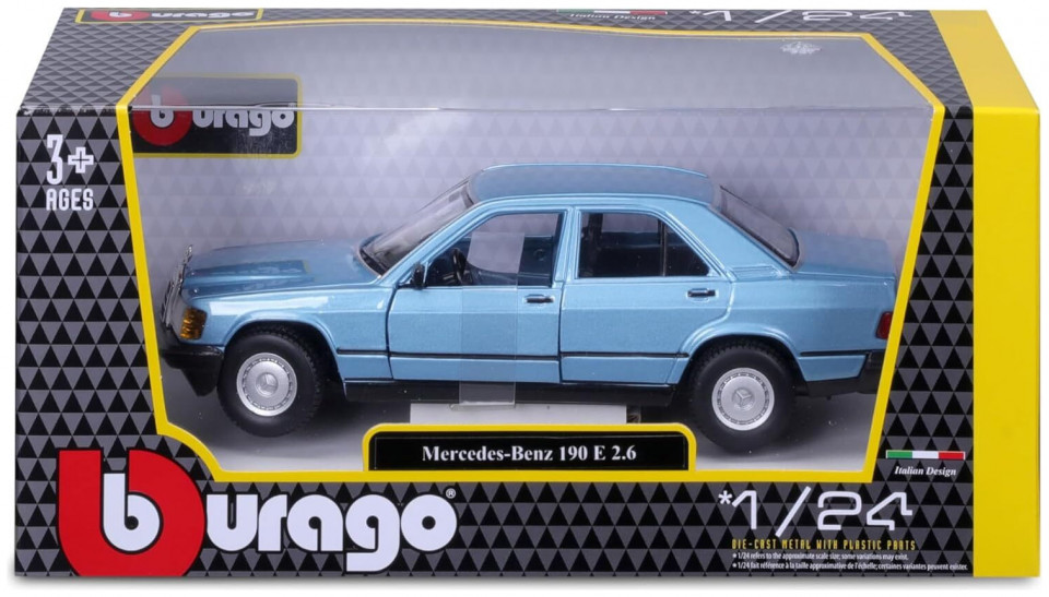 Bburago Diecast 1:24 Hobby Car Mercedes-Benz 190E 1987 Blue Ages 3+ 18-21103