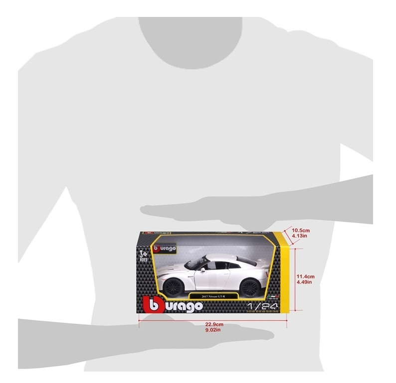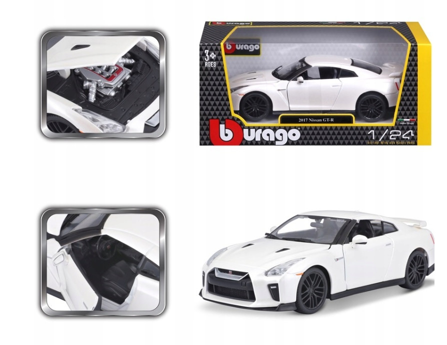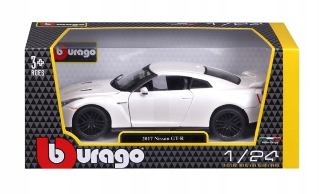Μοντέλο αυτοκινήτου Nissan GT-R Plus 2017 με κλίμακα 1/24 κατασκευασμένο με την συνήθη υψηλή ποιότητα και λεπτομέρεια της εταιρίας Burago, ενώ αντικατοπτρίζει σχεδόν τέλεια το αρχικό μοντέλο. Κατασκευάζεται από χυτοσίδηρο μαζί με κάποια πλαστικά μέρη.