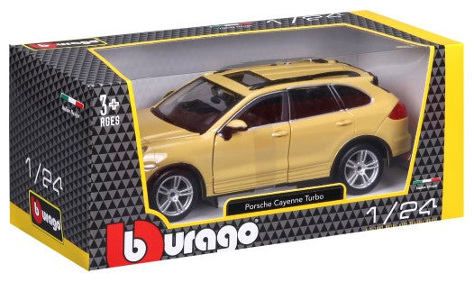 Ανακαλύψτε την πολυτέλεια και τη δύναμη με το μοντέλο της Porsche Cayenne Turbo της Bburago σε κλίμακα 1:24. Με μια γοητευτική σχεδίαση σε έντονο κίτρινο, αυτό το λεπτομερές αντίγραφο είναι η τέλεια επιλογή για τους λάτρεις των πολυτελών αυτοκινήτων και των SUV υψηλής ποιότητας."