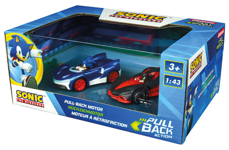 Ζήστε τη συναρπαστική εμπειρία αγώνων με το Carrera Pull Speed: Team Sonic Racing – Sonic vs. Shadow Twinpack σε κλίμακα 1:43. Το σετ περιλαμβάνει δύο αυτοκινητάκια Sonic και Shadow, έτοιμα για γρήγορους αγώνες και απεριόριστη διασκέδαση. Ιδανικό για παιδιά αλλά και συλλέκτες, προσφέρει έναν συναρπαστικό τρόπο να φέρουν τον κόσμο των αγαπημένων τους ηρώων σε κάθε παιχνίδι ή έκθεση.