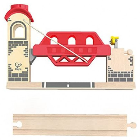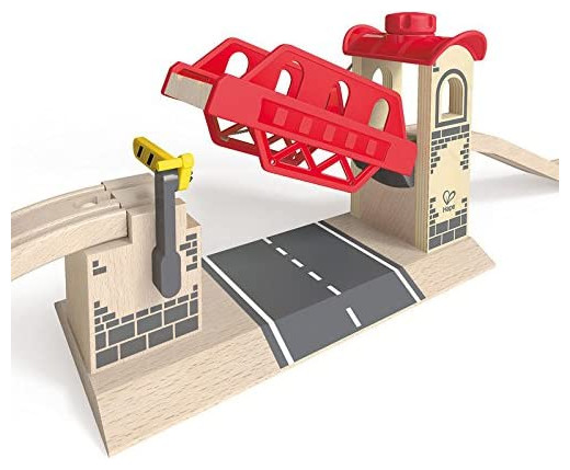 Κάθε ξύλινος σιδηρόδρομος πρέπει να έχει μια γέφυρα ανύψωσης. Προσθέτει αξία παιχνιδιού στο ξύλινο σετ τρένου σας. Η νέα ανυψωτική γέφυρα της Hape ταιριάζει απόλυτα. Κλείστε το φράγμα και τυλίξτε την κινητή γέφυρα. Διασχίζει έναν δρόμο και πρέπει να ανυψωθεί για τα υψηλά οχήματα! Συμβατό με όλα τα σετ ξύλινων σιδηροδρόμων.