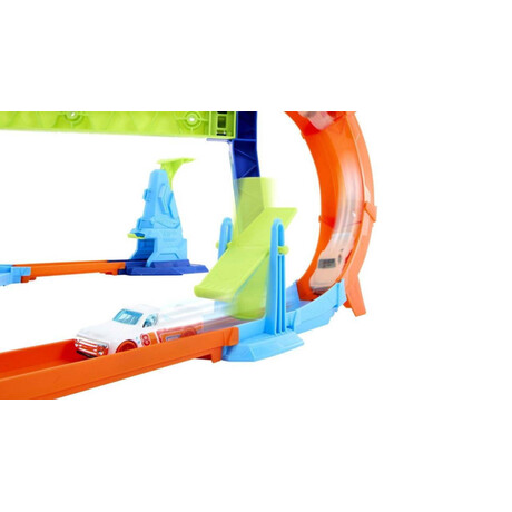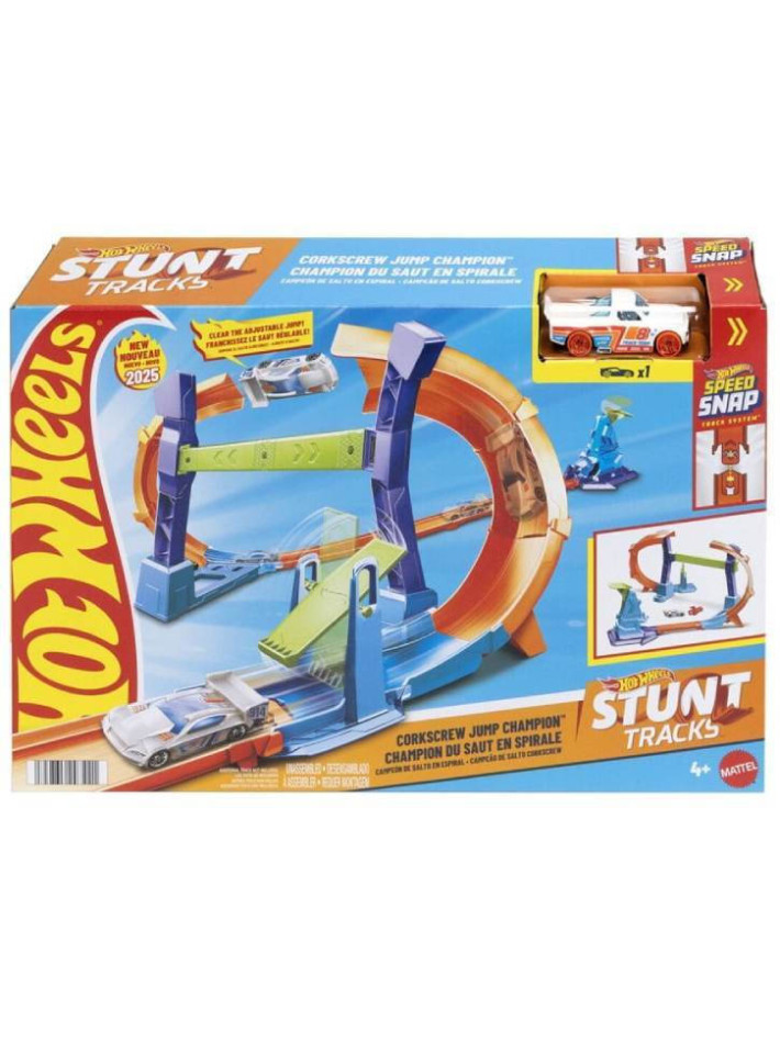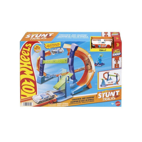 Η πίστα Hot Wheels Action – Rapid Corkscrew Jump Champion προσφέρει εκρηκτική δράση, γρήγορες εκτοξεύσεις και εντυπωσιακά άλματα σε έναν συναρπαστικό αγώνα δεξιοτεχνίας.