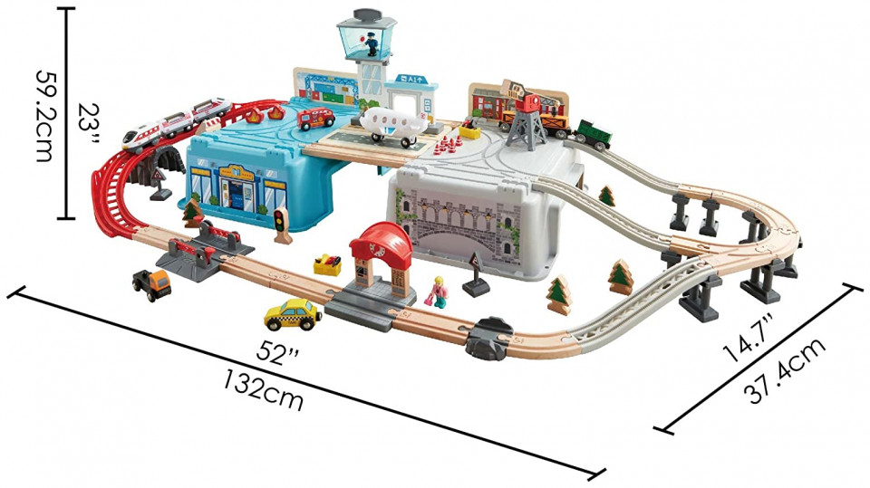 Ιδανικό για κάθε λάτρη των τρένων, αυτό είναι ένα εξαιρετικό σετ για μεγαλύτερα παιδιά. Χρησιμοποιήστε το συμπεριλαμβανόμενο κουτί αποθήκευσης και το καπάκι μέσα στις ράγες και χρησιμοποιήστε κομμάτια μπλοκ για να χτίσετε μια πόλη γύρω από τη δομή.